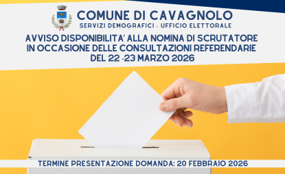 Sino al 30 novembre è possibile presentare domanda per l'iscrizione all'Albo Scrutatori di Seggio del Comune di Cavagnolo.
