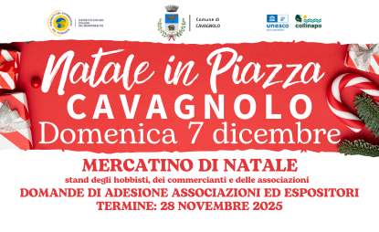 Domenica 7 dicembre 2025 si svolgerà la nuova edizione di “Natale in Piazza”, proposta dal Comune di Cavagnolo in collaborazione con le Associazioni e i Commercianti locali. Lungo l’arco della giornata si svolgeranno tanti eventi che si concluderanno con l’accensione dell’Albero e delle Luci natalizie.